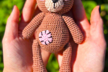 7. 3sc, one puff st or bobble in the next st, 1sc, one bobble in the next, 1sc, one bobble in the next