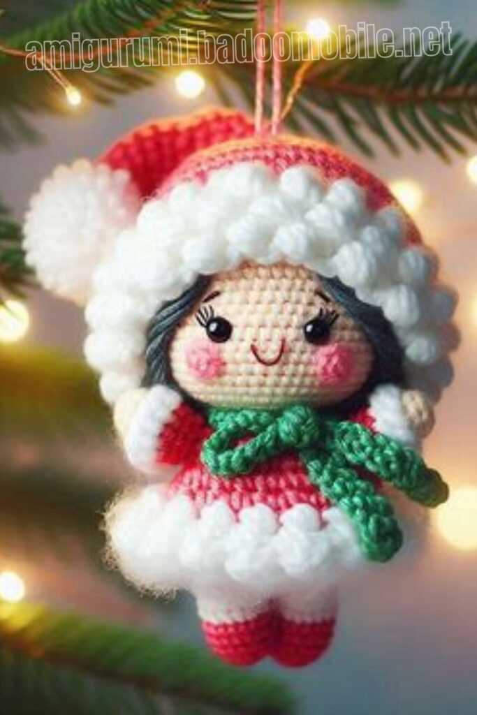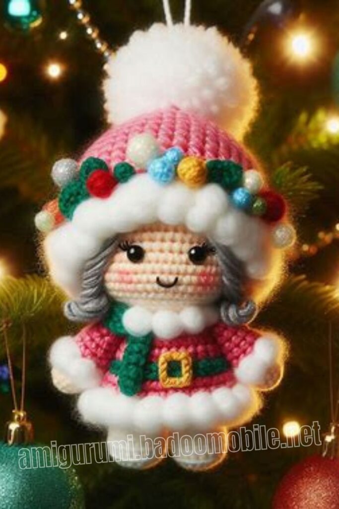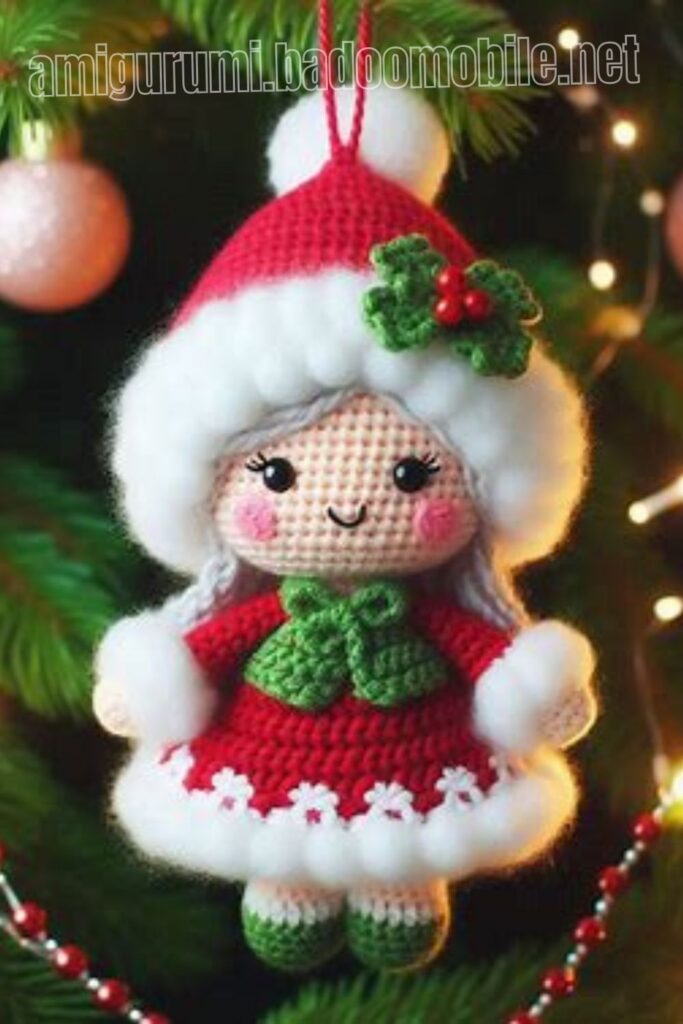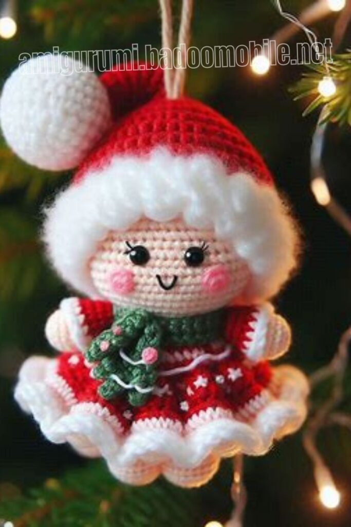 Amigurumi Crochet Mrs. Claus Ornament Free Pattern: