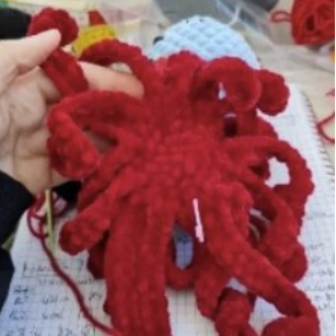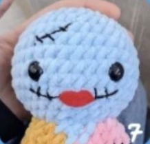• Sew the head to the body, add fiber fill while sewing if needed and make sure the face lines up with the neck