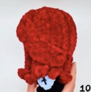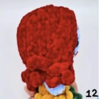 • attach the hair to the body by sewing starting from the side and going around the head (pic 11)