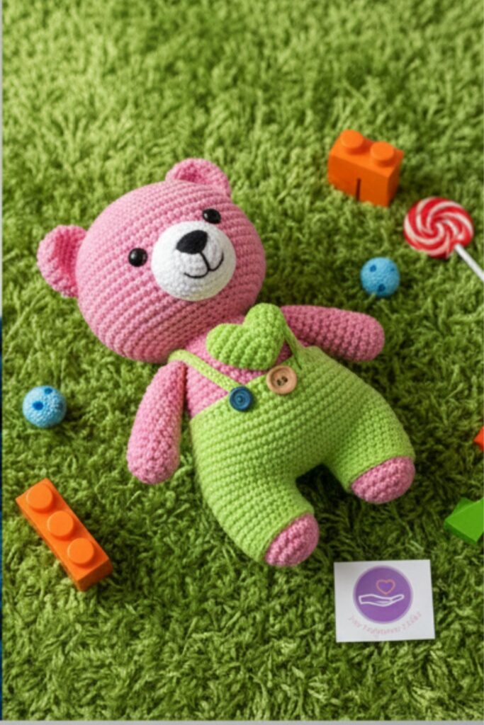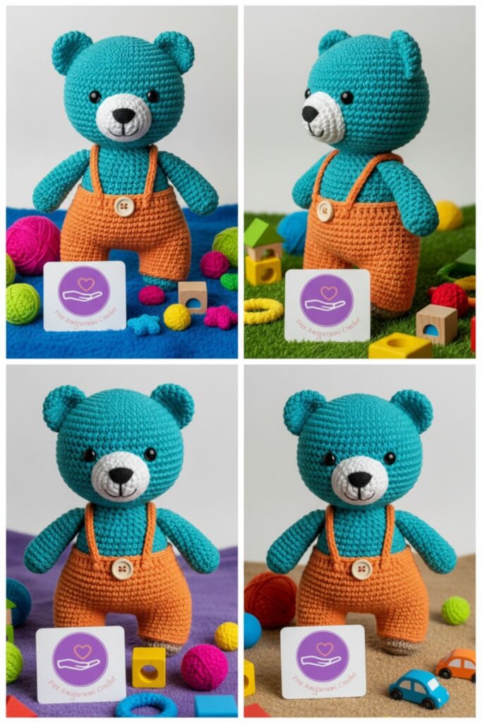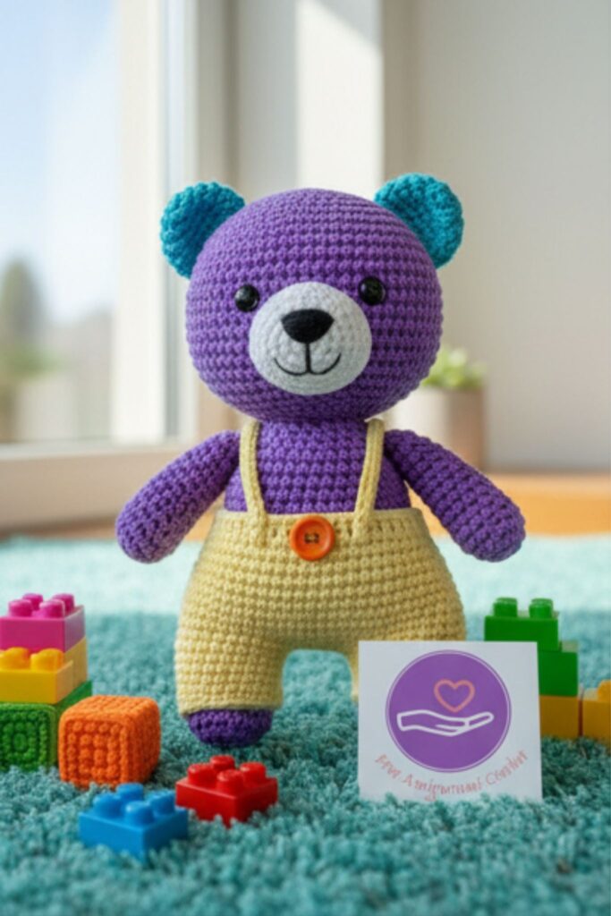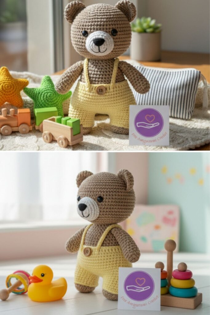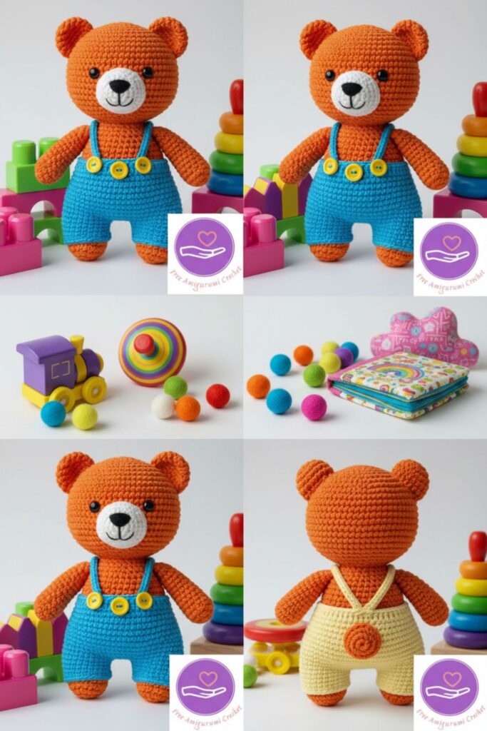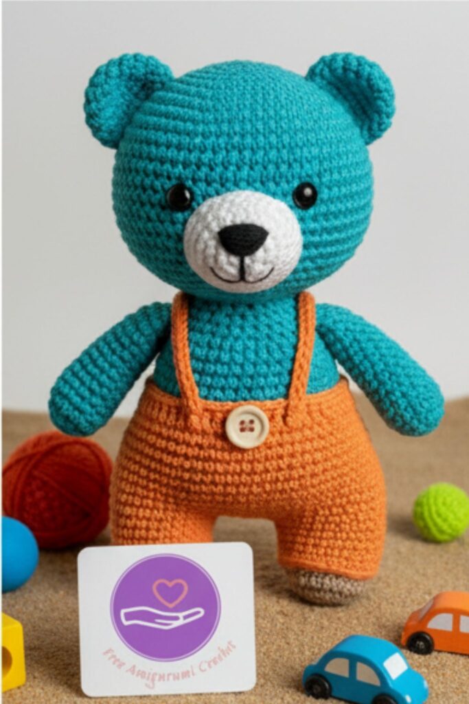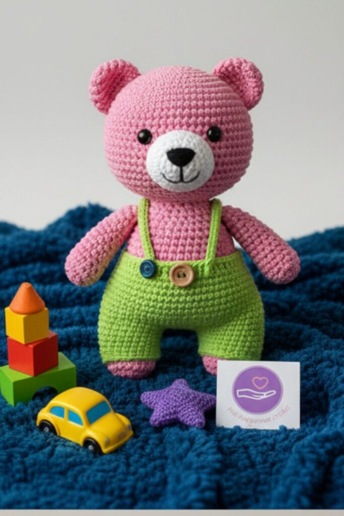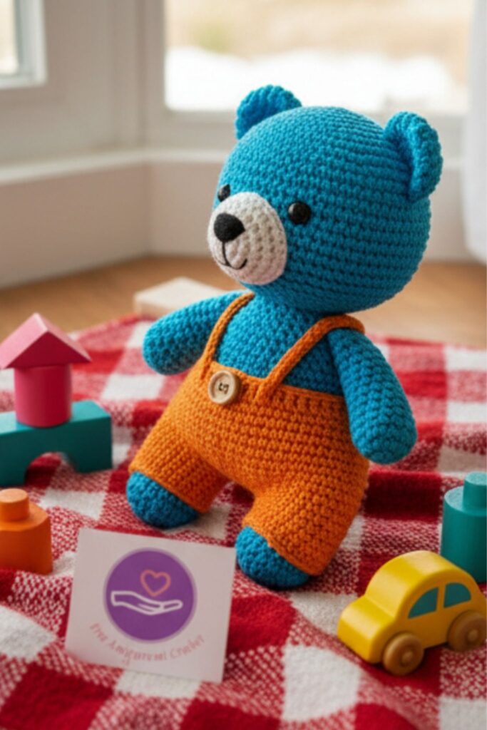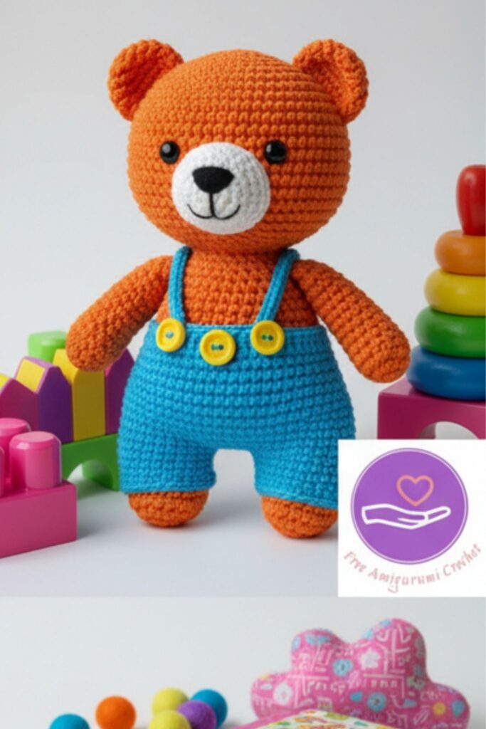 This cute teddy bear wearing non-removable pants is crocheted mostly in one piece, making it sturdy, beginner-friendly, and perfect as a handmade gift or nursery decor.