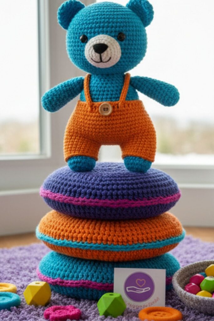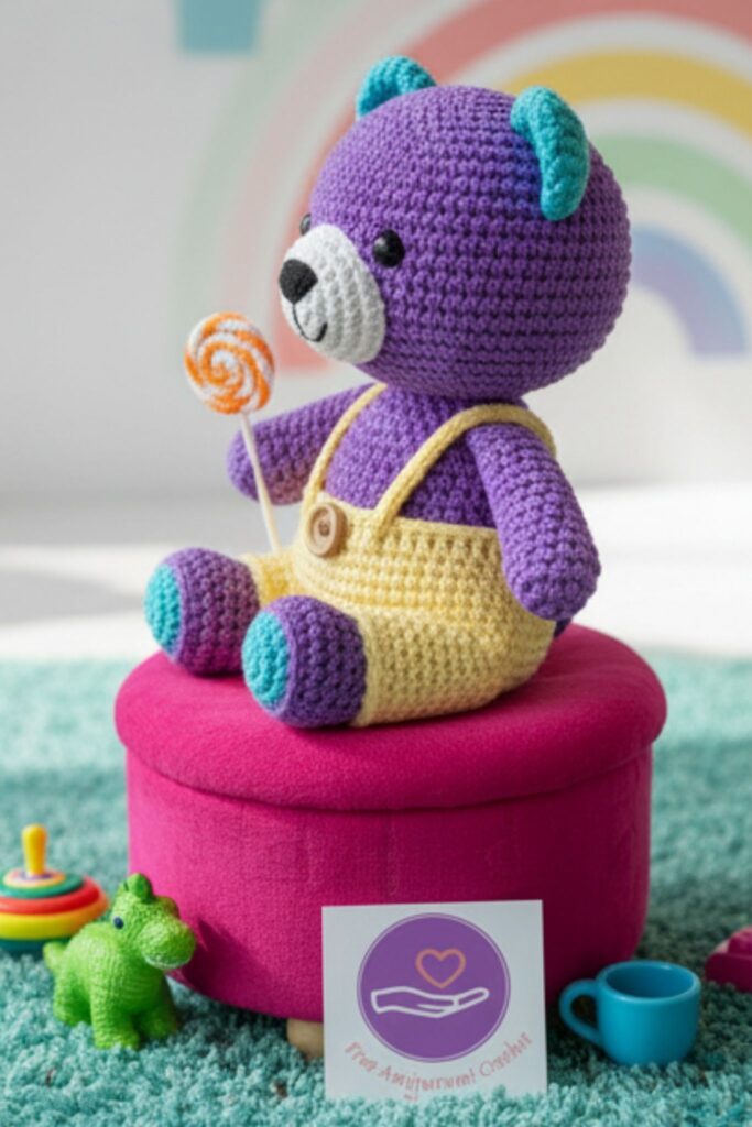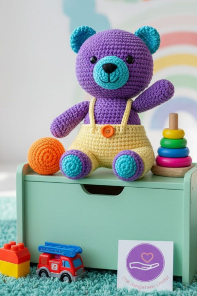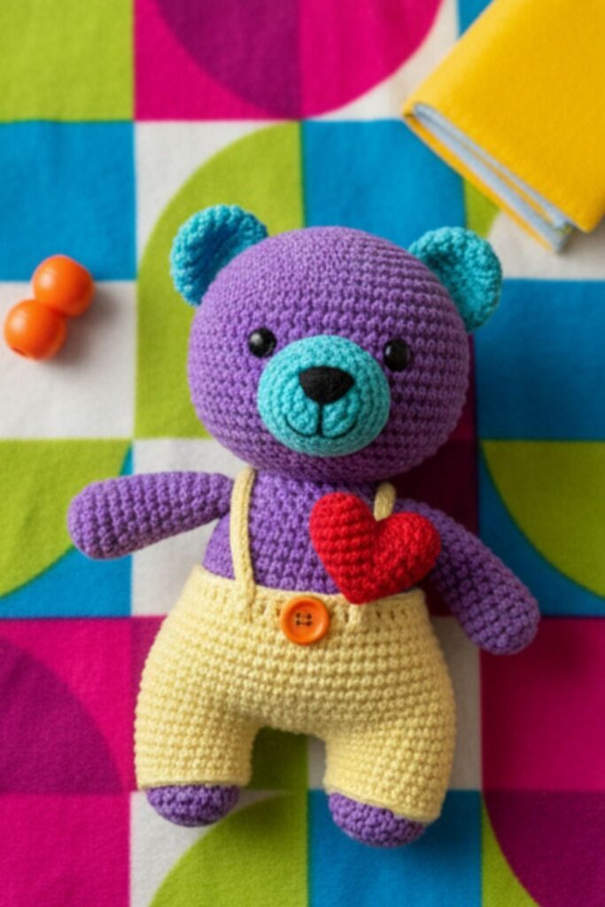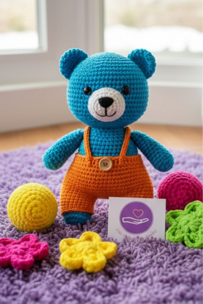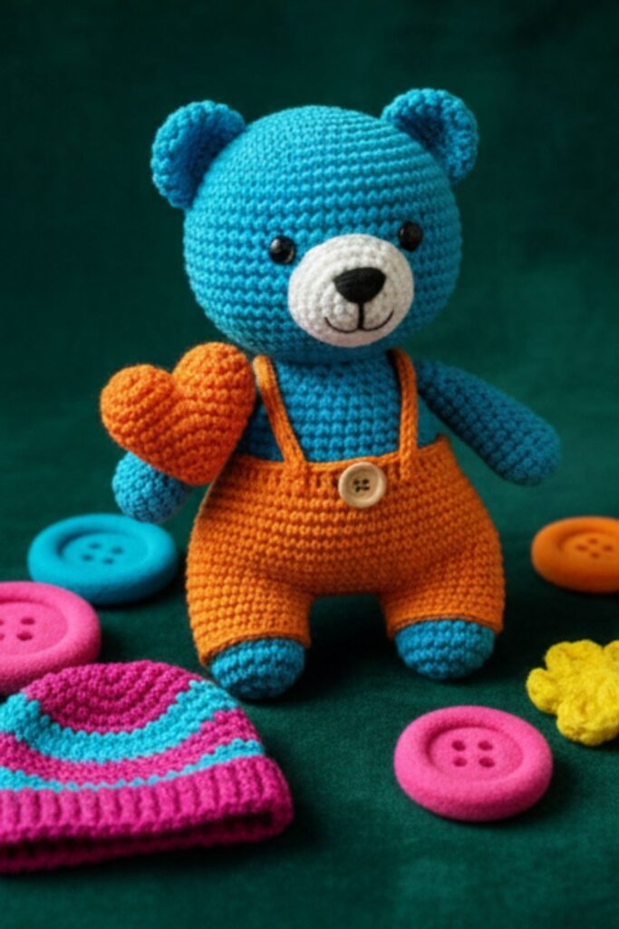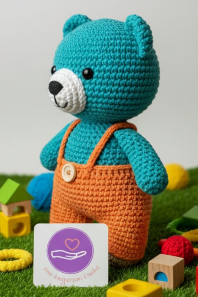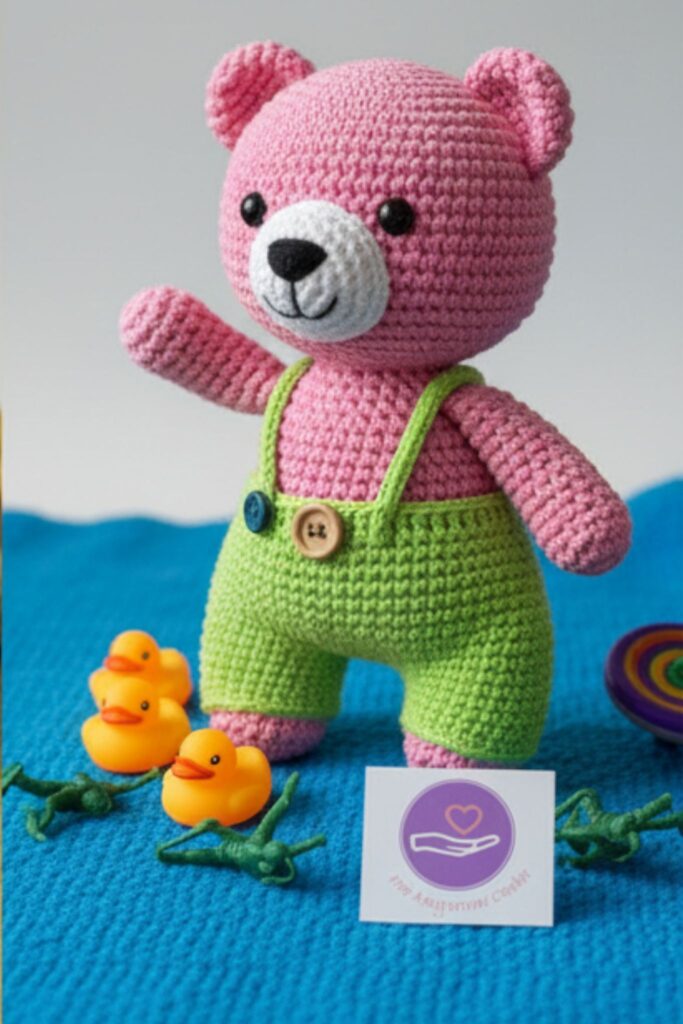 This cute teddy bear wearing non-removable pants is crocheted mostly in one piece, making it sturdy, beginner-friendly, and perfect as a handmade gift or nursery decor.