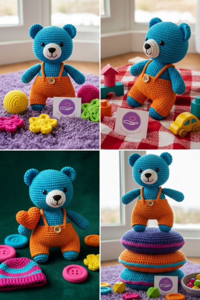 🎨 Finished Amigurumi Teddy Bear in Pants– Color Variations and Accesories