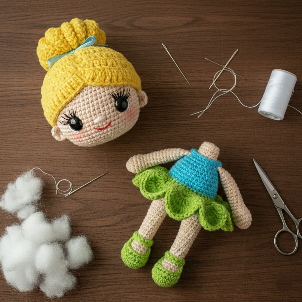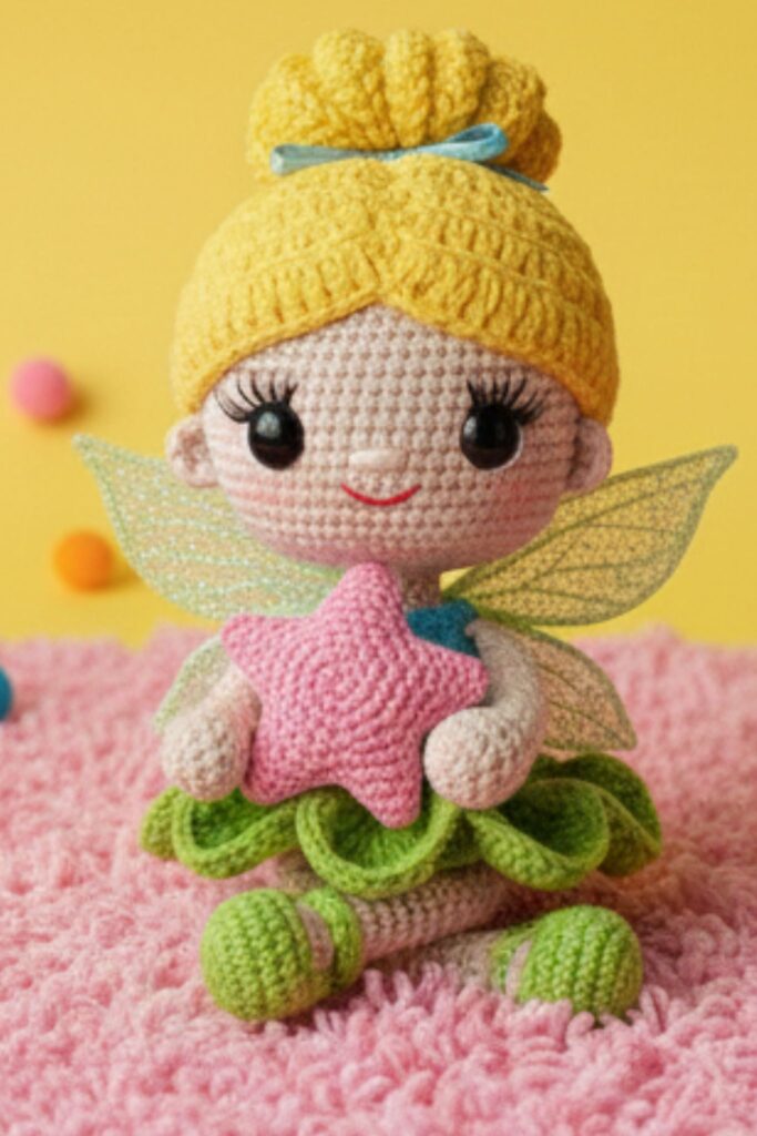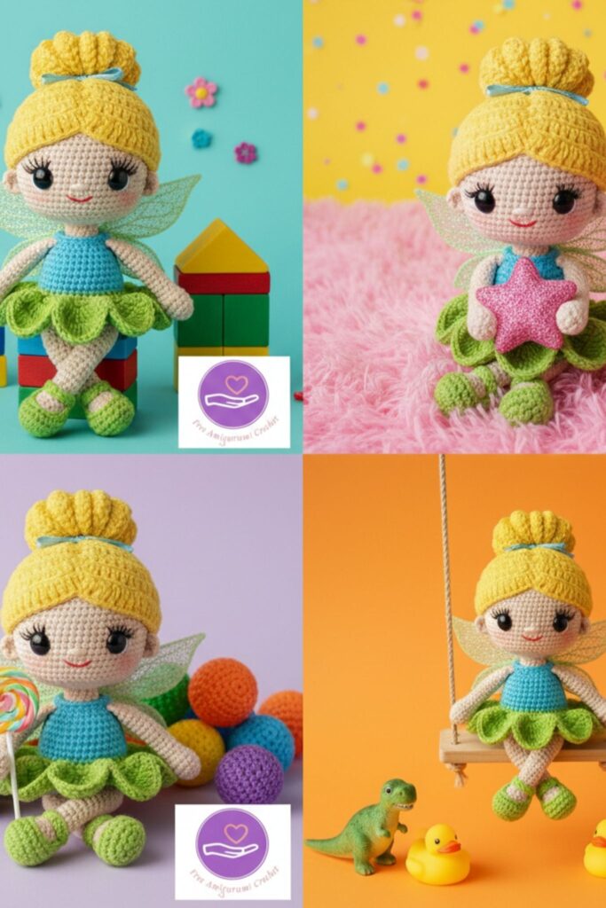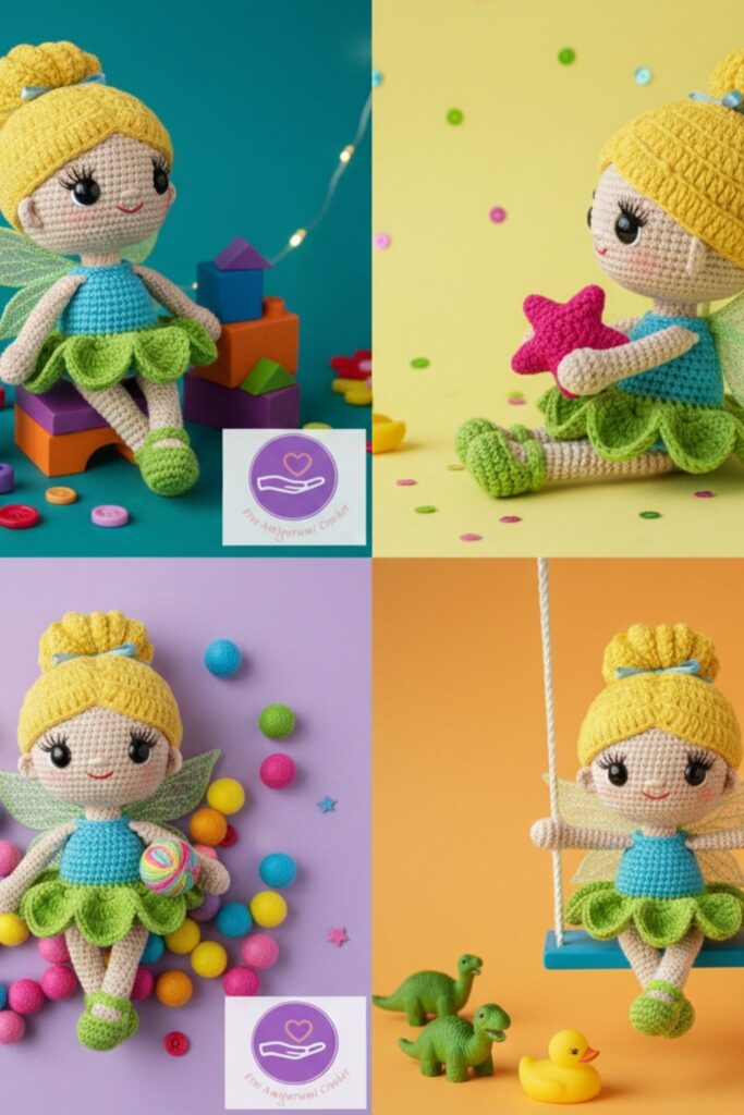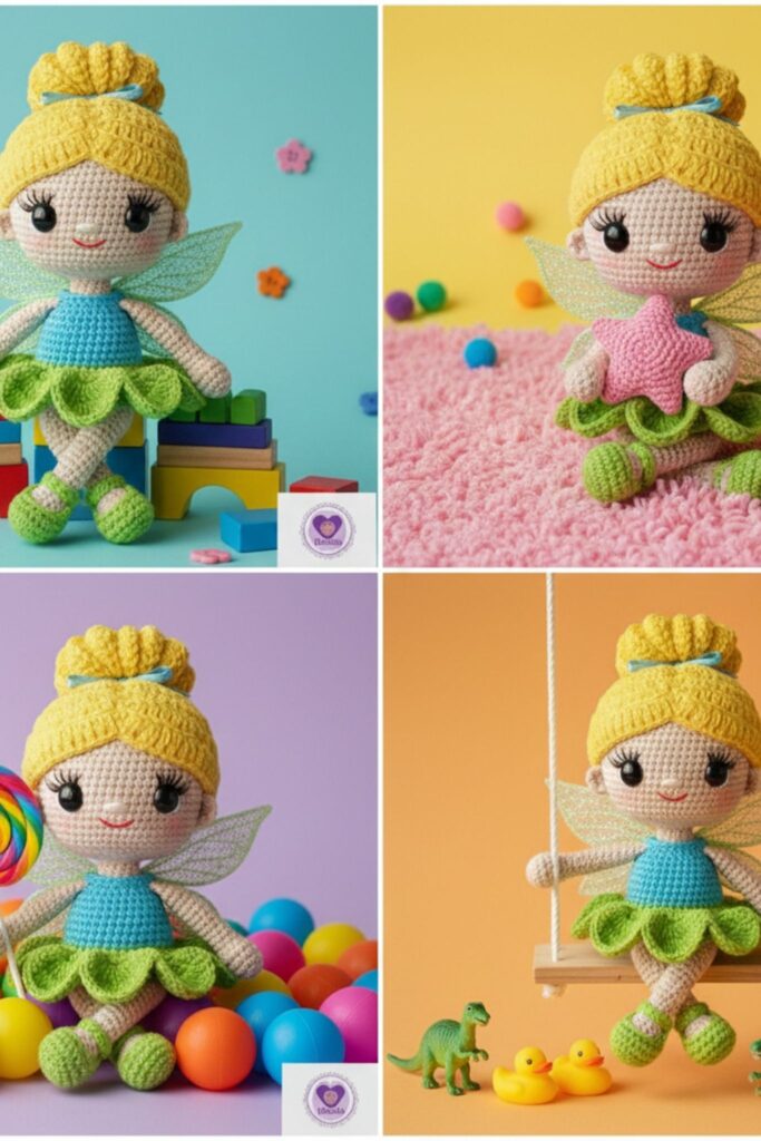 🎨 Finished Amigurumi Tinker Bell – Color Variations and Accesories