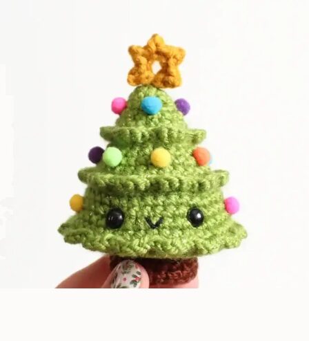 Amigurumi Crochet Mini Christmas Tree Ornament Free Pattern-1