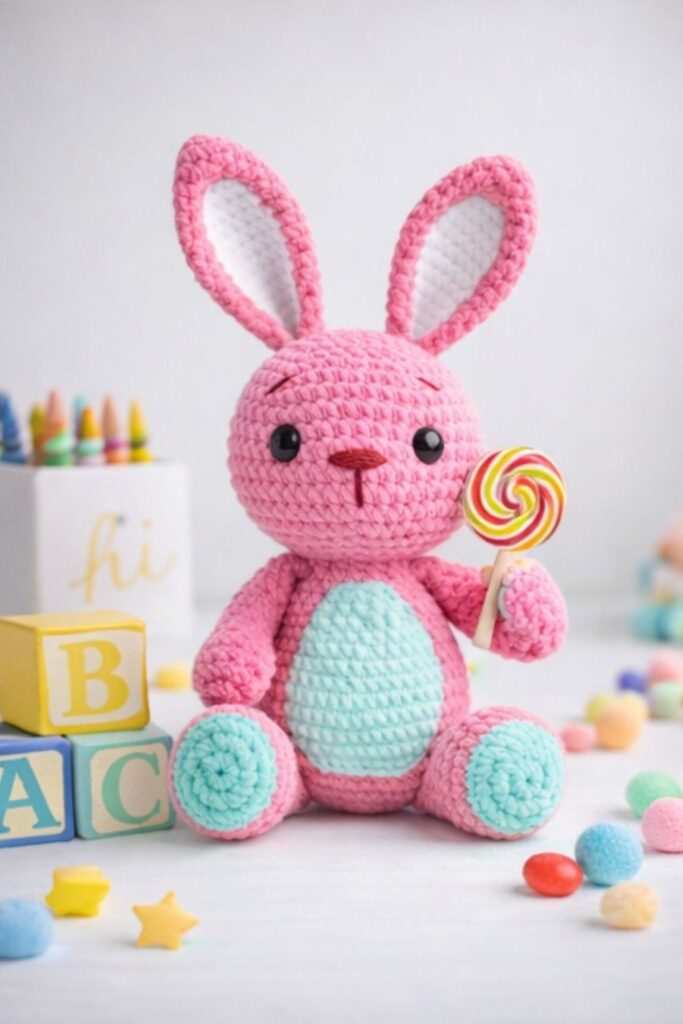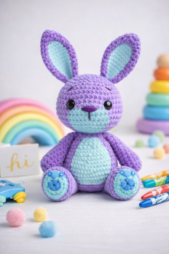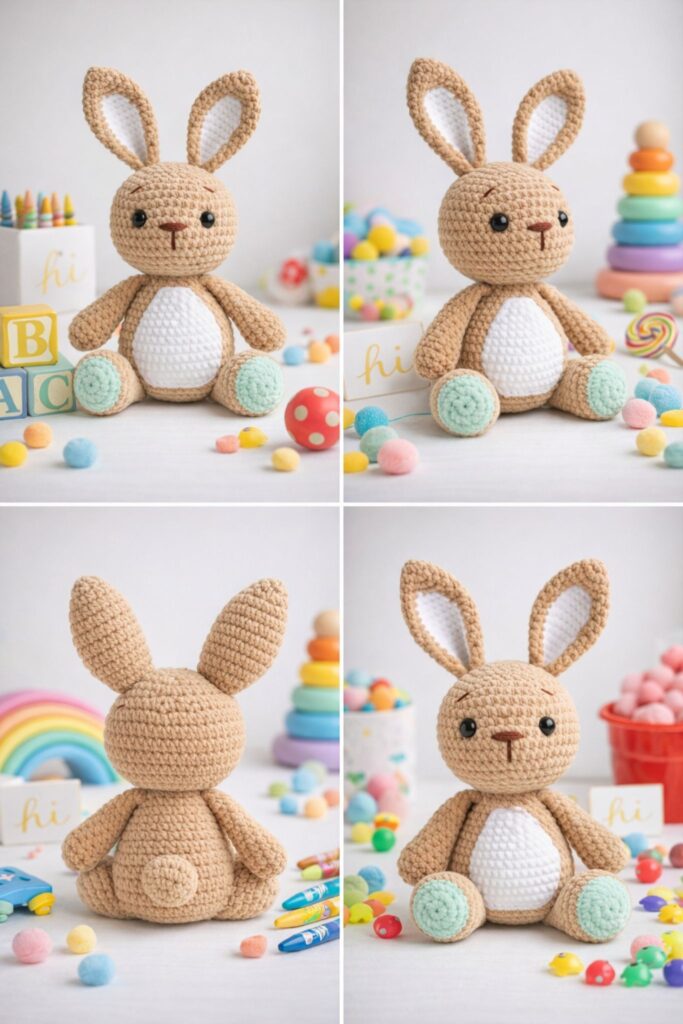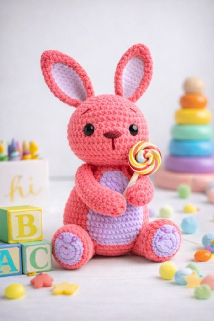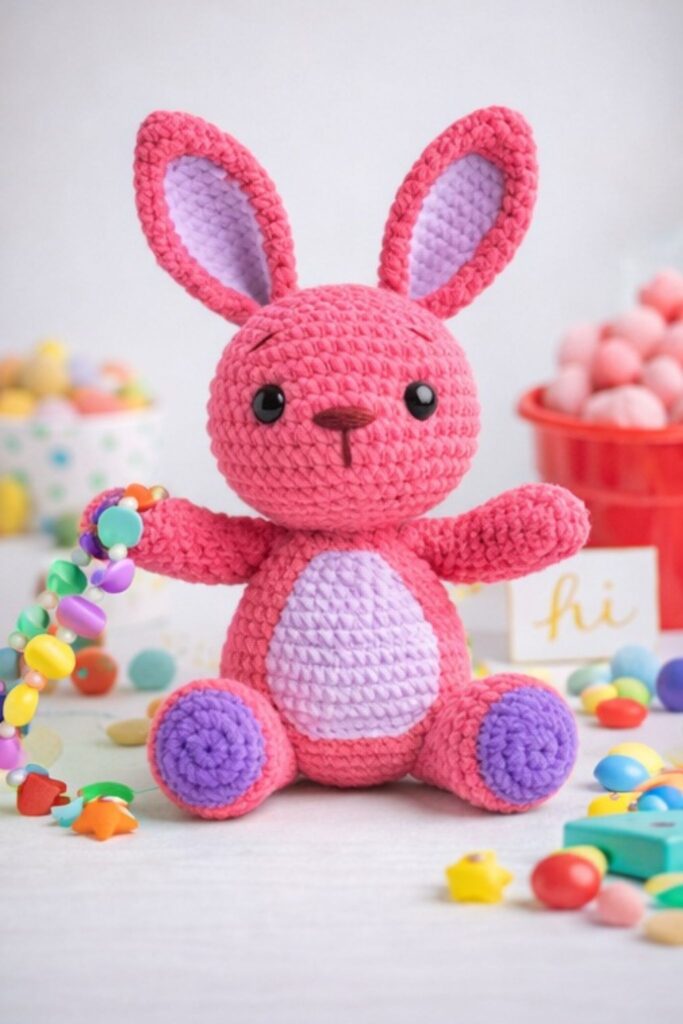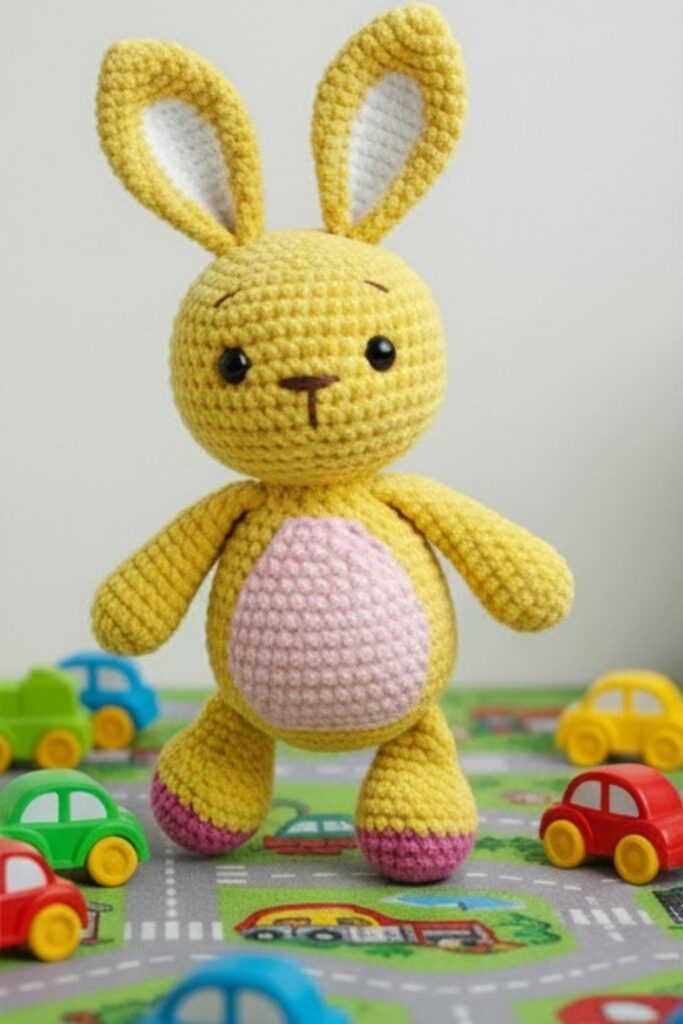 This velvet bunny amigurumi free crochet pattern is designed for amigurumi lovers who enjoy creating soft, cute, and professional-looking handmade toys. With its clean stitches, balanced proportions, and beginner-friendly construction, this amigurumi bunny is perfect for both gifting and selling finished toys. The pattern includes clear step-by-step instructions for each body part, making it easy to follow while achieving a premium handmade result. If you are looking for a modern, market-friendly amigurumi bunny crochet pattern, this design is a great choice.