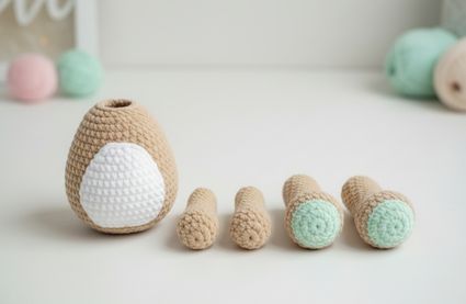 Embroider a small horizontal nose using brown yarn between Rounds 11–12.