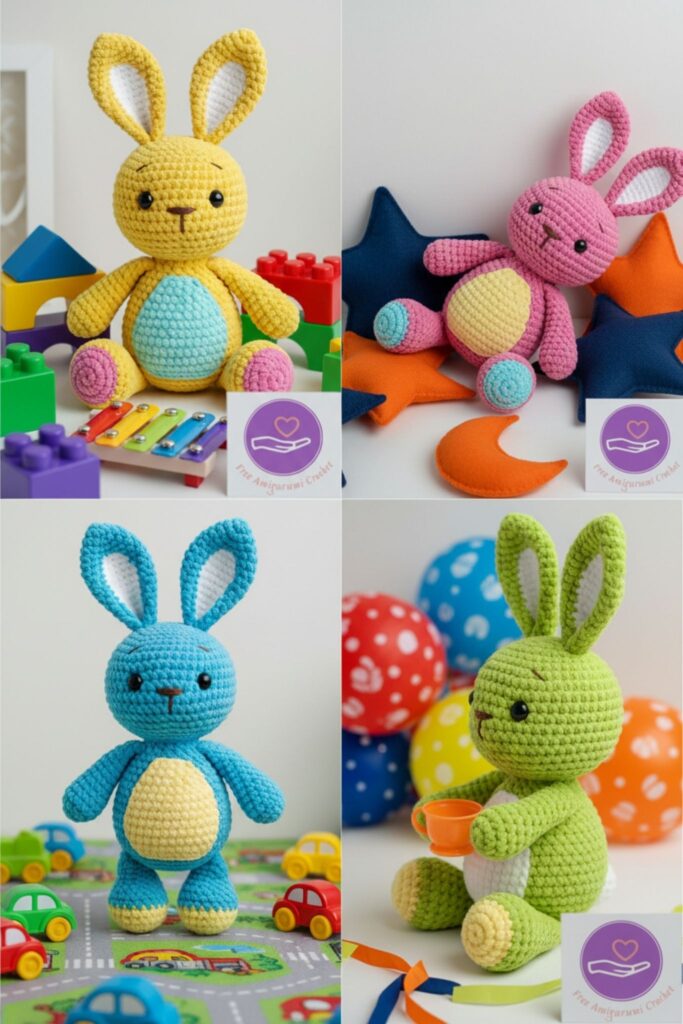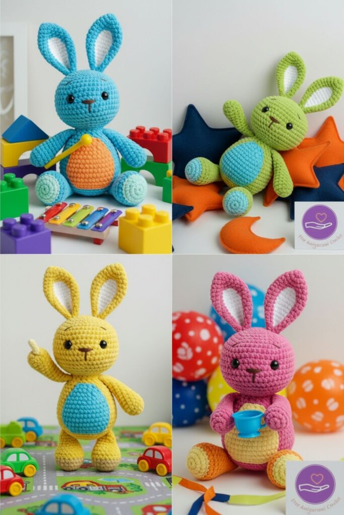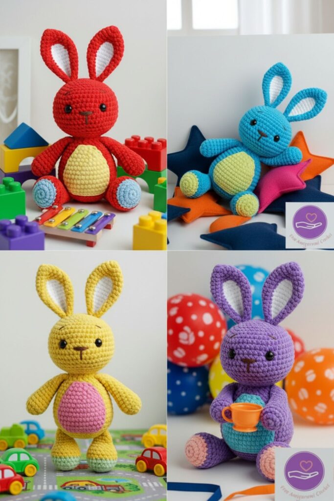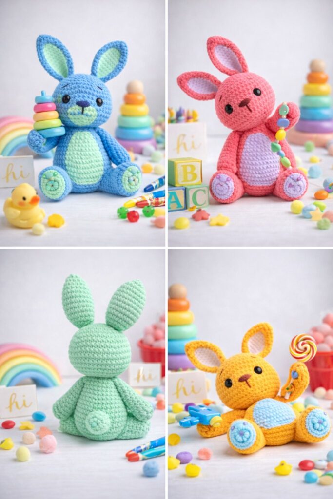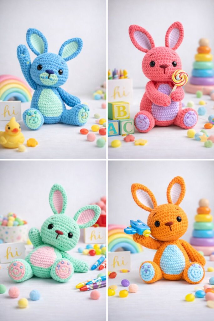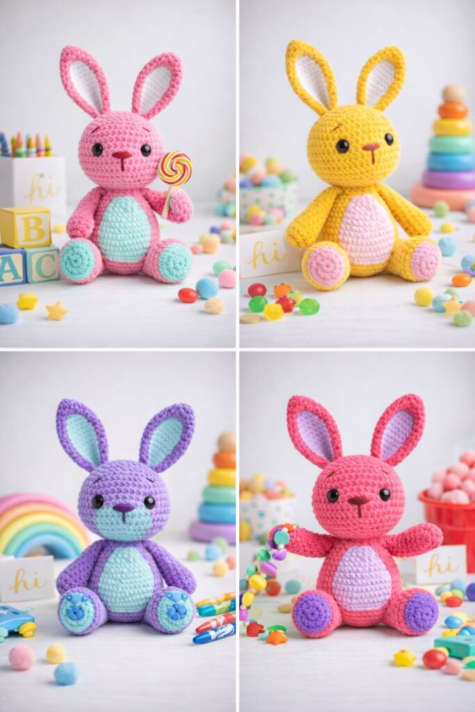 🎨 Finished Amigurumi Bunny – Color Variations and Accesories