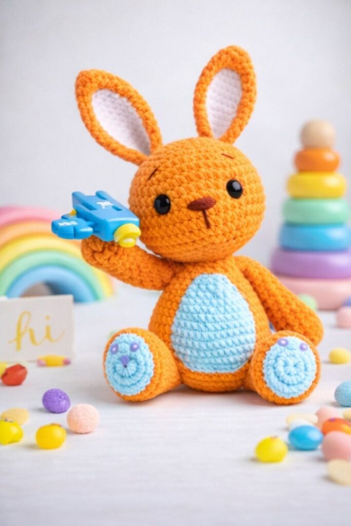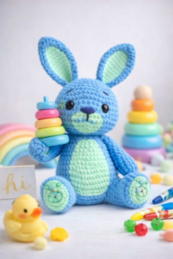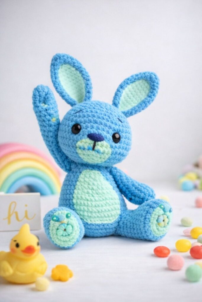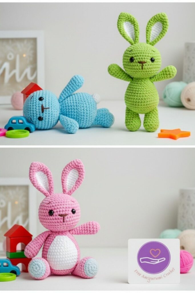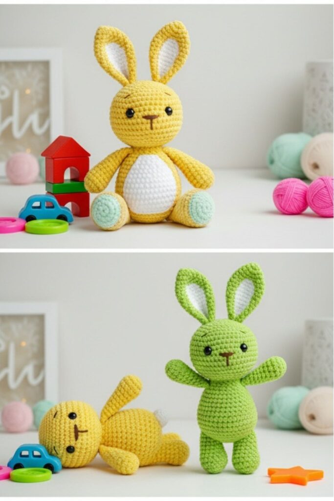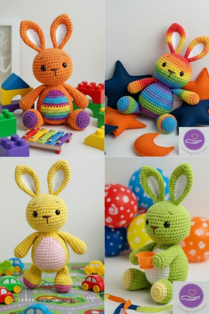 🎨 Finished Amigurumi Bunny – Color Variations and Accesories